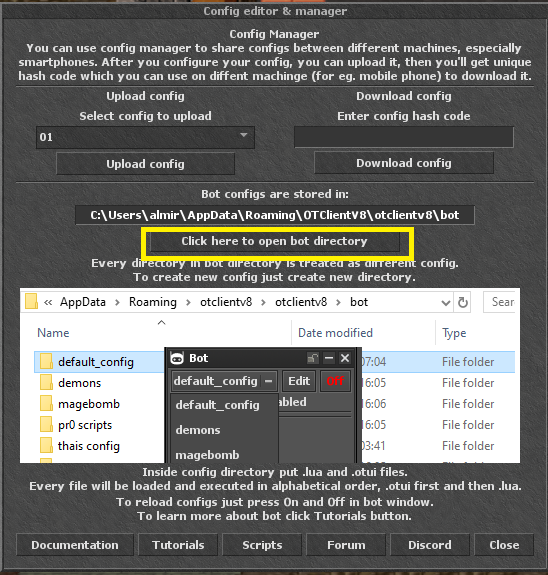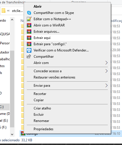 Agora basta pegar o arquivo que você baixou "Configs" e extrair na pasta que foi aberta, o caminho da pasta é similar a esse "C:\Users\Fulano\AppData\Roaming\WotClient\WOT Server\bot" e substitua tudo!.