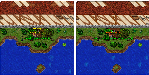 Ao usar o comando !emote as spells que anteriormente eram das cor amarela, ficarão da com laranja e não aparecerão no Default. Para desativar basta usar o comando !emote novamente.