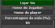setDefaultTab("Main") macro(100, "Ligar Sio", nil, function() local friend = getPlayerByName(storage.healFriend) if friend and friend:getHealthPercent() < tonumber(storage.healFriendPercent) then say("Exura Gran Sio \"" .. storage.healFriend) delay(700) end end) addLabel("sioname", "Nome do Jogador:", warTab) addTextEdit("healfriend", storage.healFriend or "", function(widget, text) storage.healFriend = text end) addLabel("siopercent", "Porcentagem da vida (%):", warTab) addTextEdit("healfriendpercent", storage.healFriendPercent or "", function(widget, text) storage.healFriendPercent = text end)