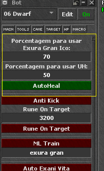 Obs: Caso esteja usando o healbot do cliente é necessário desativar para não dar conflito (Exceto mana potions).